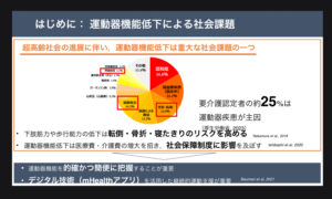 We shared results from our Japan Agency for Medical Research and Development(AMED)-supported study using the Koji Awareness (KA) app, showing that remote training can achieve similar improvements in physical function and pain reduction as in-person sessions.